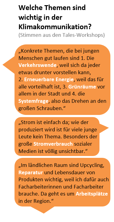 Im Zentrum der Workshops stehen die Fragen, wie wissenschaftliches Wissen die jungen Entscheidungstragenden am besten unterstützen kann und welche praktischen Erfahrungen sie in ihrer politischen Arbeit mit dem Thema Klimawandel gesammelt haben. Einen ersten Eindruck dieser noch laufenden Forschung vermitteln die stichprobenartigen Zitate zu drei der Schlüsselfragen dieser Workshops. Sie sind am Rande dieses Textes aufgeführt und werden in den kommenden Monaten noch intensiv ausgewertet.